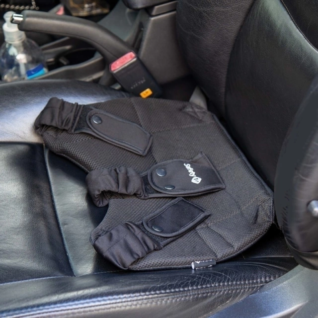 Com 3 pontos de fixação, para 2 modos de uso: o uso com apenas as tiras laterais é ideal para quando a gestante estiver de saia ou vestido, e o uso também da tira central é ideal para quando ela estiver de calça ou shorts. Possui um lado antiderrapante e tira com fivela e ajuste, para melhor fixação no banco do carro, e o outro lado respirável para sentar e tornar o uso agradável. Pode ser usada já a partir dos 2 meses de gestação e é fácil de higienizar podendo ser lavado a mão.